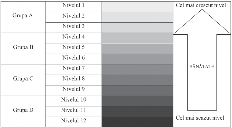 La vârful scalei se află organismele cu o stare generală de sănătate buna şi cu mecanisme de apărare ce funcţionează bine, fără predispoziţii ereditare grave. Pe măsură ce coborâm pe scală, mecanismul de apărare devine tot mai slab şi sistemul imun este tot mai des pus în pericol, prin urmare tendinţa de a dezvolta stări patologice grave creşte. De vreme ce apărarea este puternică la nivelurile superioare, este puţin probabil ca aici să se manifeste boli importante, cu excepţia cazurilor în care indivizii sunt supuşi la un stres extrem, astfel activând o predispoziţie ereditară latentă. Desigur idealul este de realiza încadrarea într-un nivel superior de sănătate iar remediile homeopate pot realiza creşteri graduale pe nivele sau chiar salturi peste unul sau mai multe nivele.