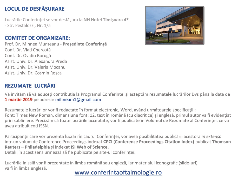 vă invităm la cea de-a XI-a Ediție a Conferinței de Oftalmologie cu