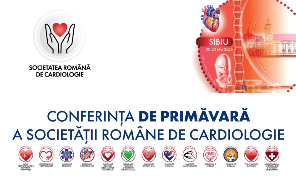 Afisari: 62Societatea Română de Cardiologie vă invită să participați la CONFERINȚA DE PRIMĂVARĂ 2026, ce va avea loc la Sibiu, în perioada 20-23 mai 2026.
