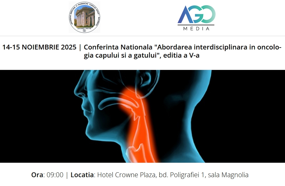 Afisari: 237AGOMedia va invita la a V-a editie a Conferintei Nationale "Abordarea interdisciplinara in oncologia capului si a gatului" ce va avea loc in perioada 14-15 noiembrie 2025 la Hotel Crowne Plaza, sala Magnolia.