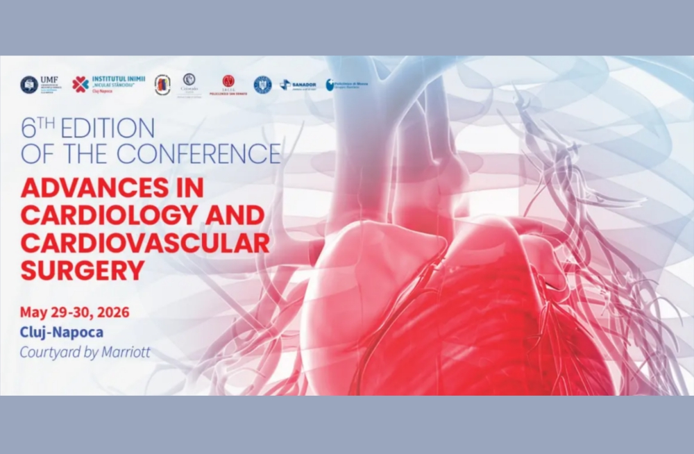 Afisari: 328Conferința Națională privind „Progrese în Cardiologie și Chirurgie Cardiovasculară” este programată pentru 29-30 mai 2026, la Hotelul Courtyard by Marriott din Cluj-Napoca, România.