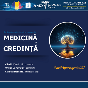 În cadrul Congresului Asociației Medicale Române & Rommedica Denta, care se va desfășura în perioada 16–19 octombrie 2025 la Romexpo București, va avea loc secțiunea specială „Medicină și credință”. Tema va fi dezbătută în data de vineri, 17 octombrie 2025, într-un cadru dedicat publicului larg – persoane interesate de legătura dintre știință și spiritualitate.