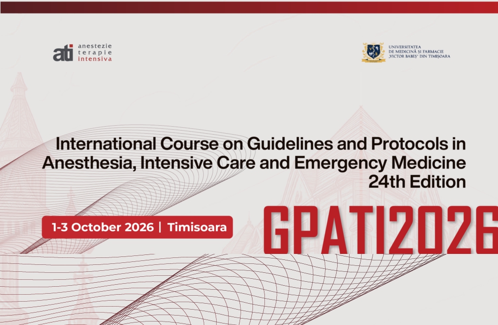 Afisari: 73We are pleased to welcome you to the 24th Edition of the International Course on Guidelines and Protocols in Anesthesia, Intensive Care and Emergency Medicine, scheduled to take place from October 1 to 3, 2026, in Timișoara.