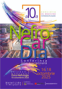 Stimaţi colegi,Cu mare entuziasm, vă invit la Timişoara, între 16 şi 18 octombrie 2025, la cea de-a 10-a ediţie a Conferinţei Interdisciplinare NefroCarDia şi la cea de-a 3-a ediţie a Workshop-ului...