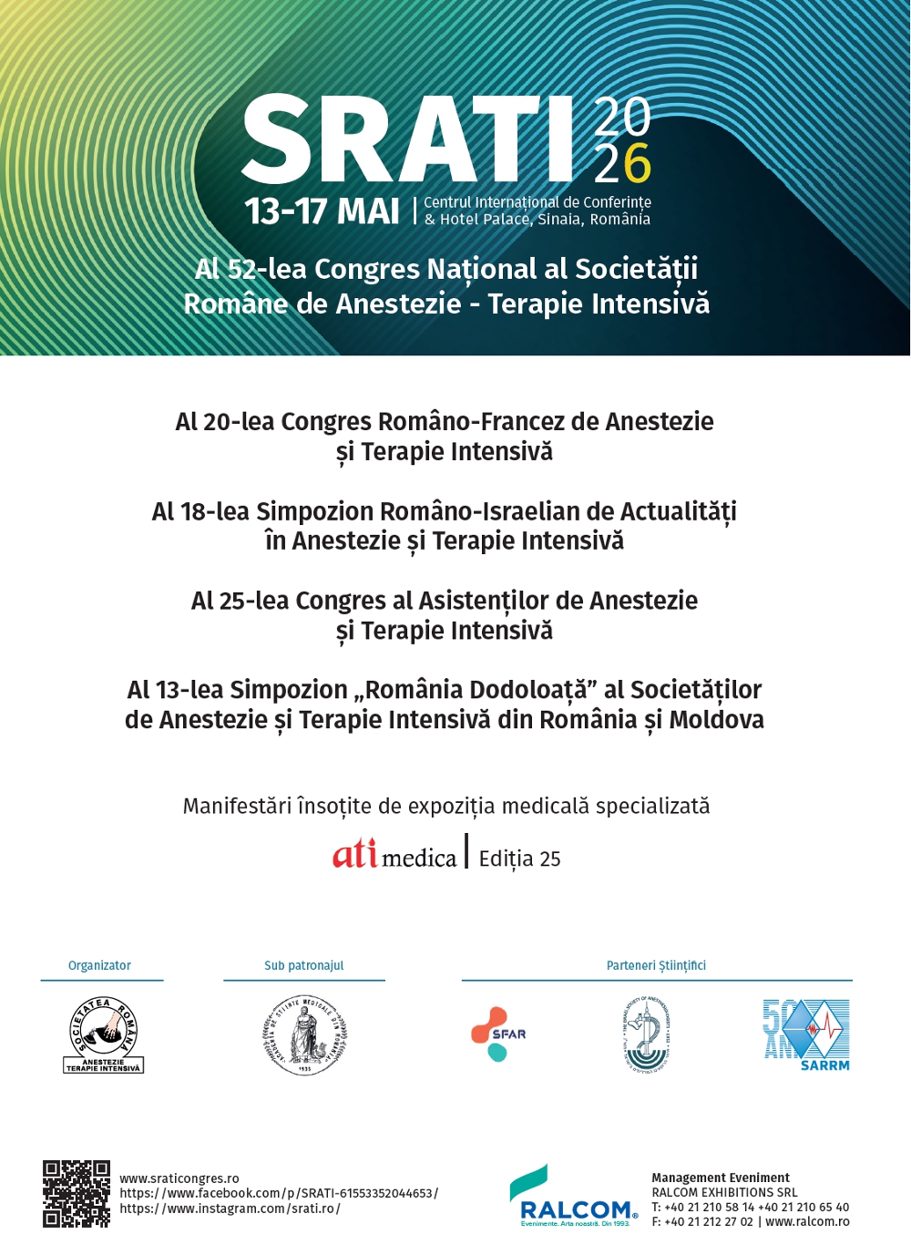 SRATI - a 52-a ediție a Congresului Național al Societății Române de Anestezie – Terapie Intensivă 2026