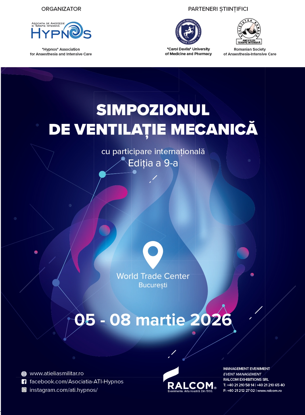 Am plăcerea de a vă invita la cea de-a 9-a ediție a Simpozionului de Ventilație Mecanică – SVM 2026, care se va desfășura în perioada 5–8 martie 2026, la World Trade Center, București.