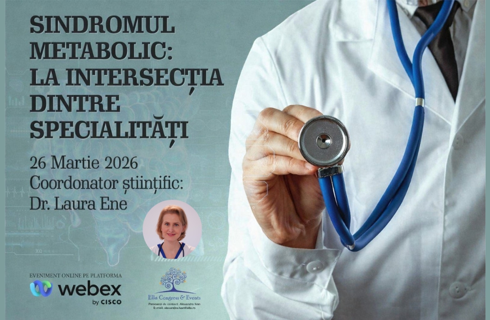 Societatea Română de Medicină Internă organizează în data de 26 martie 2026 webinarul „Sindromul metabolic: la intersecția dintre specialități”, desfășurat sub coordonarea științifică a Dr. Laura Ene.